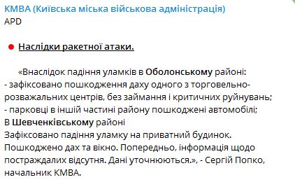 Позже появилась более подробная информация о последствиях ракетной атаки в Киеве.