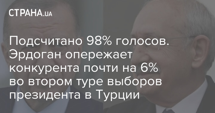 По данным издания Yeni Şafak, после подсчета 98% голосов на выборах президента Турции, Эрдоган набирает 52,8%, а Кылычдароглу – 47,2%.
