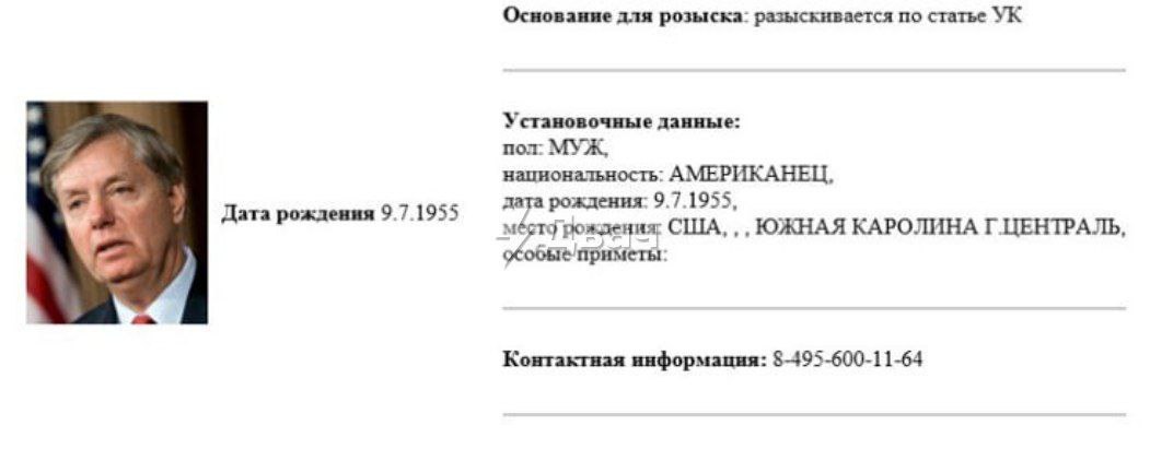 В России объявили в розыск американского сенатора Грэма после заявлений о мертвых русских