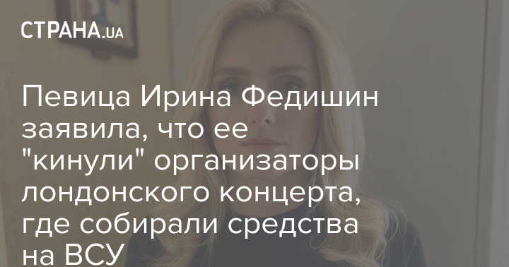 Украинская певица Ирина Федишин заявила, что организаторы благотворительного концерта в Лондоне для сбора средств в помощь ВСУ "кинули" ее на деньги, не отдав гонорар.