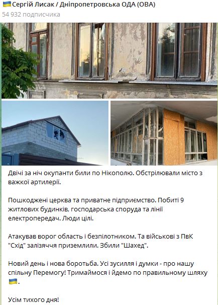 Дважды за ночь 5 июня россияне обстреляли Никополь. Они обстреляли город из тяжелой артиллерии.
