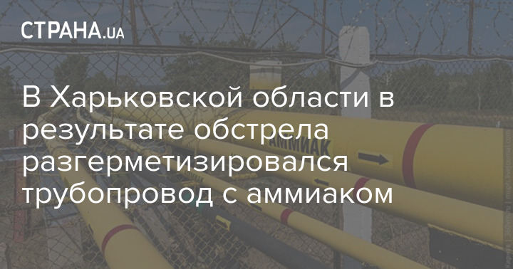 В Купянском районе Харьковской области в результате обстрела поврежден трубопровод с аммиаком, произошла его разгерметизация.