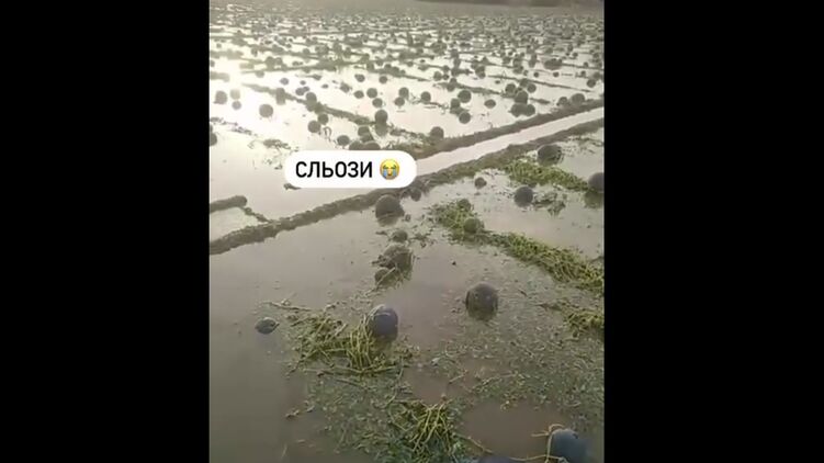 Сегодня многие телеграм-каналы опубликовали видео, как утверждается, из Херсонской области  - с затопленными полями арбузов. В ролике над плодами горюет человек, судя по всему, молодой мужчина.