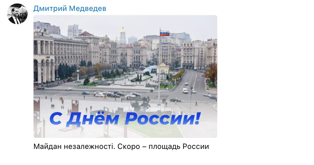 Поздравляя россиян с Днем РФ, он опубликовал снимок украинского Майдана Независимости с подписью: "Скоро – площадь России".