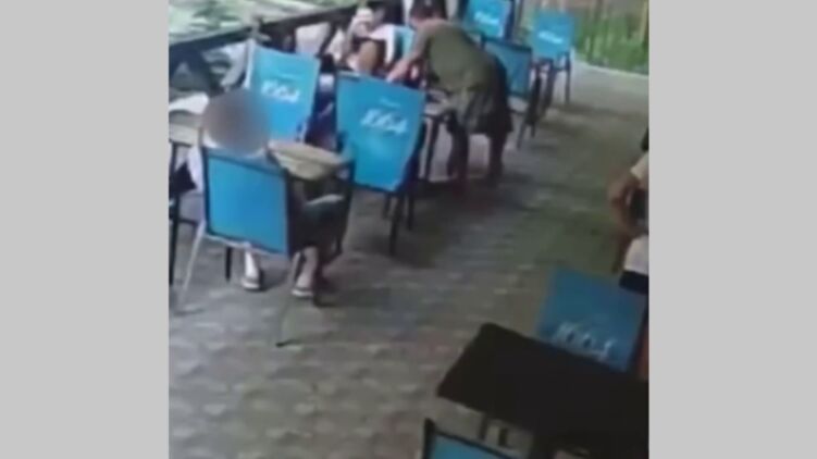 На видео заметно, что мужчина в явно нетрезвом состоянии сперва приставал к посетителям кафе, а потом начал драку.