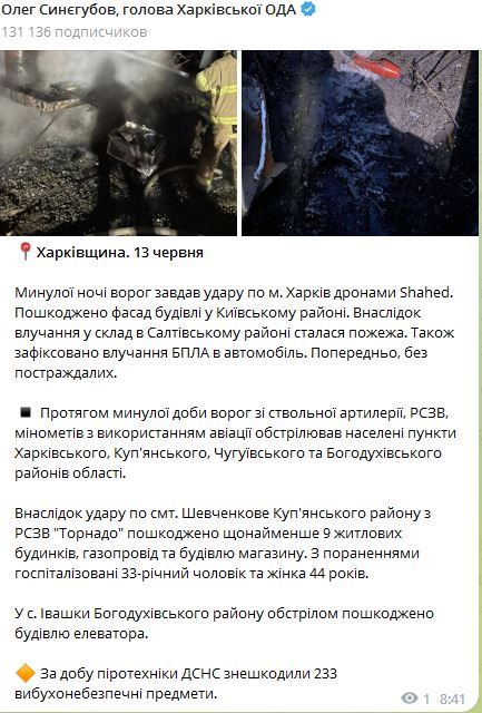 Ночью россияне нанесли удар по Харькову дронами Shahed.