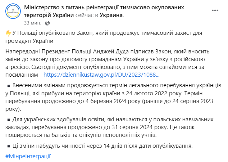 А для тех, кто собирается учиться в польских учебных заведениях (и их родителей/опекунов), пребывание продлено до 31 августа 2024 года.