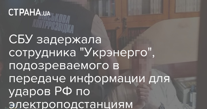 СБУ задержала сотрудника "Укрэнерго", подозреваемого в передаче информации для ударов РФ по электроподстанциям