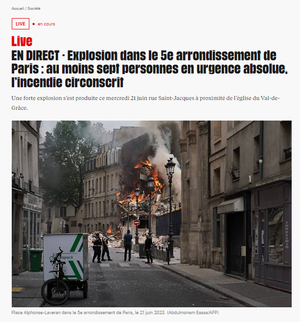 "Жители пятого округа, произошел взрыв газа на площади Альфонса Лаверана в районе Валь-де-Грас, некоторые здания горят. Пожалуйста, держитесь на расстоянии, чтобы дать возможность пожарной бригаде вмешаться", — заявил первый заместитель мэра пятого округа Эдуард Сивель.