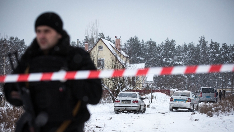 Место перестрелки полицейских в селе Княжичи под Киевом, фото: Украинские новости