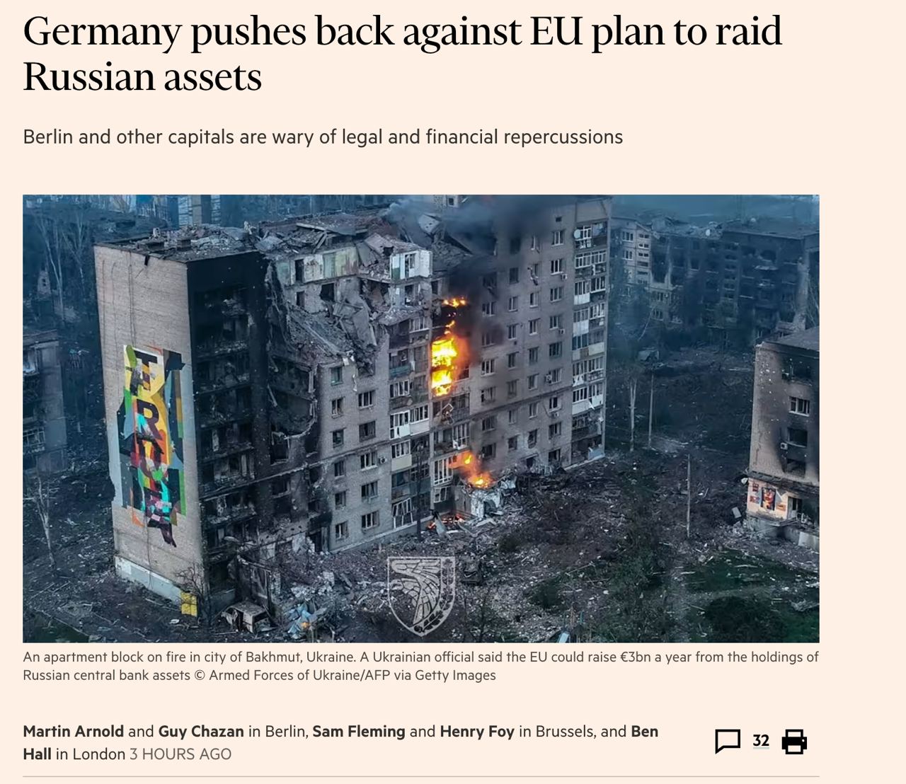 10.20 Германия высказалась против плана ЕС использовать замороженные активы центробанка РФ для восстановления Украины, пишет Financial Times.