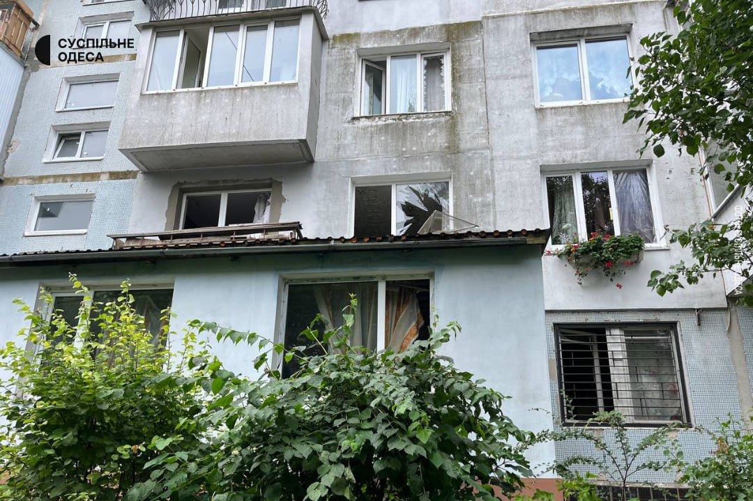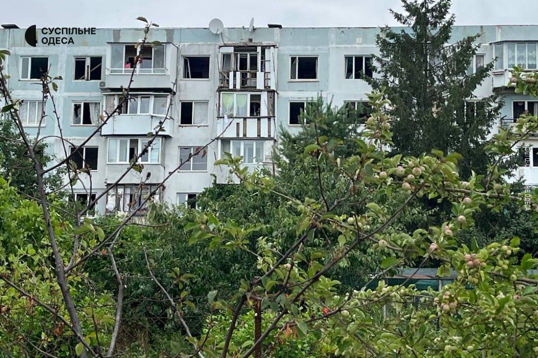 12.05 Фото из Одесской области, где падение дрона выбило окна в двухэтажках.