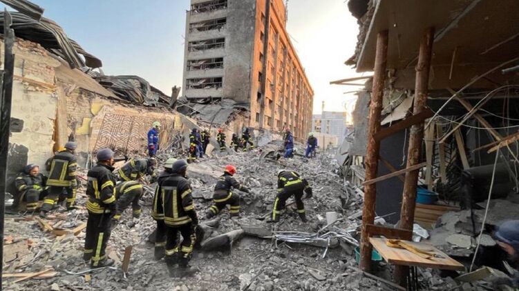 На утро известно о восьми погибших после вчерашнего удара РФ, но разбор завалов разрушенного здания и поиск людей, предположительно находящихся под завалами, продолжается.