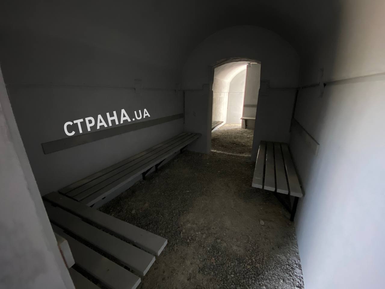 Бетонная коробка на 20 человек, есть лавки, но нет света. "Страна" побывала в первом мобильном укрытии в Киеве