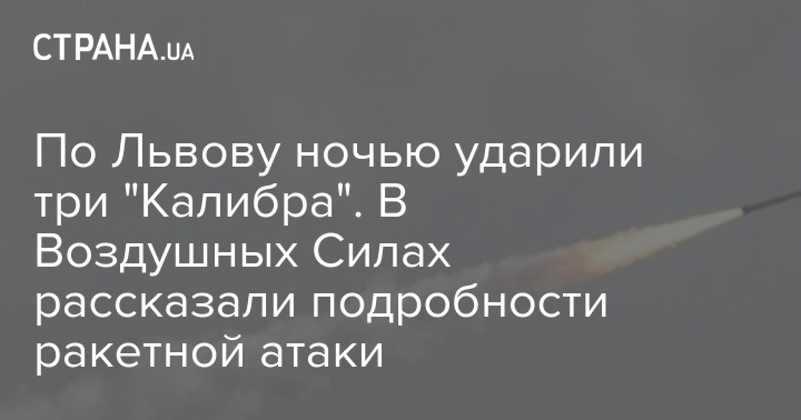 По Львову сегодня ночью ударили три "Калибра". Всего было пущено десять ракет, но семь из них были сбиты по ходу движения.