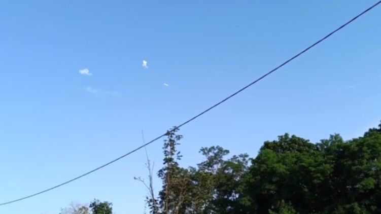 Пишут о том, что было около 15 взрывов, а в небе видны следы работы ПВО.