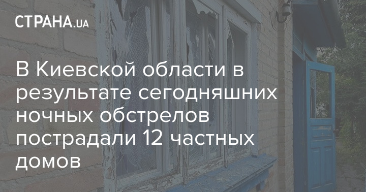 В Киевской области в результате сегодняшних ночных обстрелов пострадали 12 частных домов, у шести квартир в многоэтажке выбило окна.