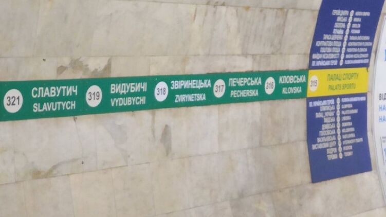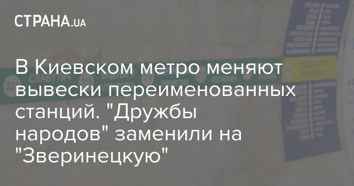 В Киевском метро продолжают менять вывески переименованных станций. Название "Дружбы народов" на зеленой ветке уже заменили на "Зверинецкую".