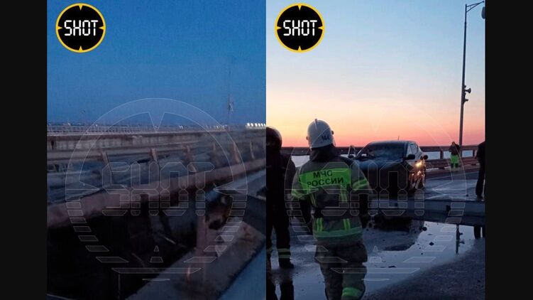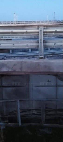 По данным телеграм-каналов, на мосту ночью прогремели два взрыва: около трёх часов, после которого погасло освещение, и в 3:20. В результате оказались повреждены два пролета: один в сторону Тамани разрушен, второй - в направлении Керчи - просел. Также каналы опубликовали видео просевшего пролета Крымского моста. На кадрах заметен разлом между частями сооружения. При этом по нему ходят люди - автомобилисты и полиция.