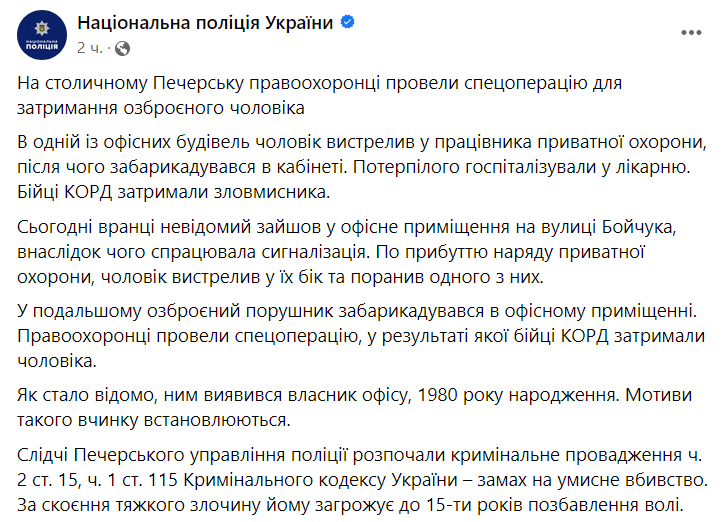 В Киеве на Печерске владелец офиса устроил перестрелку с охраной, есть раненый