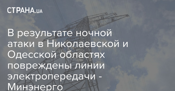 В среду, 19 июля, в результате ночных обстрелов Украины зафиксировано повреждение линий электропередачи в Николаевской и Одесской областях. Также из-за непогоды обесточивалось более 140 населенных пунктов в шести областях. При этом дефицит в энергосистеме отсутствует.
