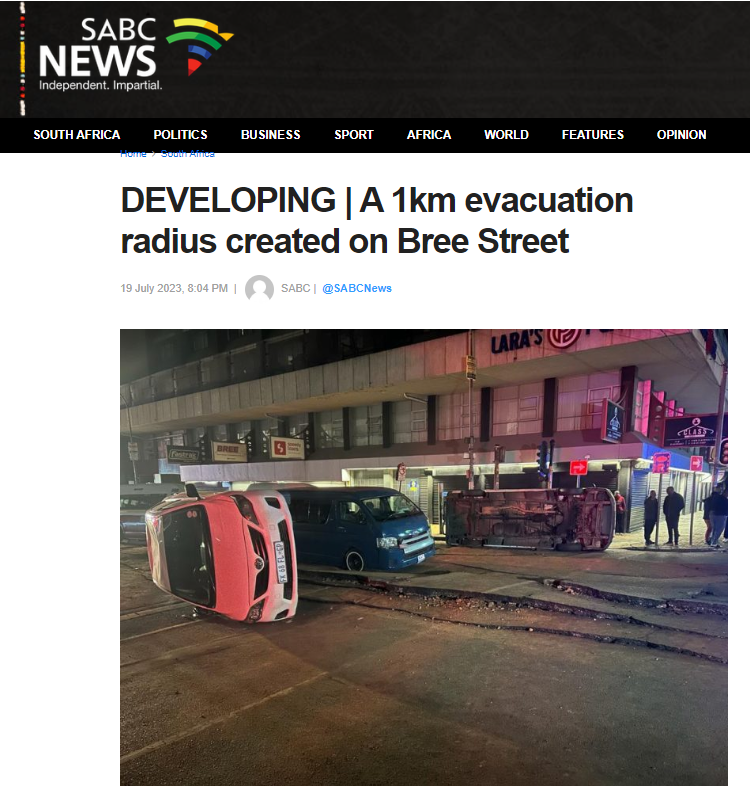 Служба экстренной помощи подтвердила взрыв на улице Бри в Симмонсе в центральном деловом районе Йоханнесбурга, который повлек за собой частичный обвал дороги.