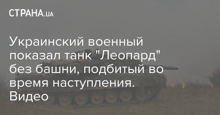Украинский военный показывает подбитый танк "Леопард" во время наступления.