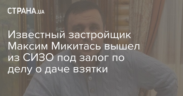 Бывший народный депутат и известный столичный застройщик Максим Микитась вышел из СИЗО под залог по делу о попытке дать взятку мэру Днепра.