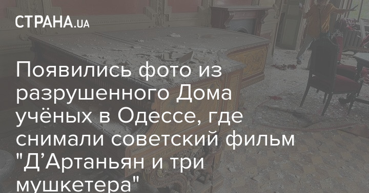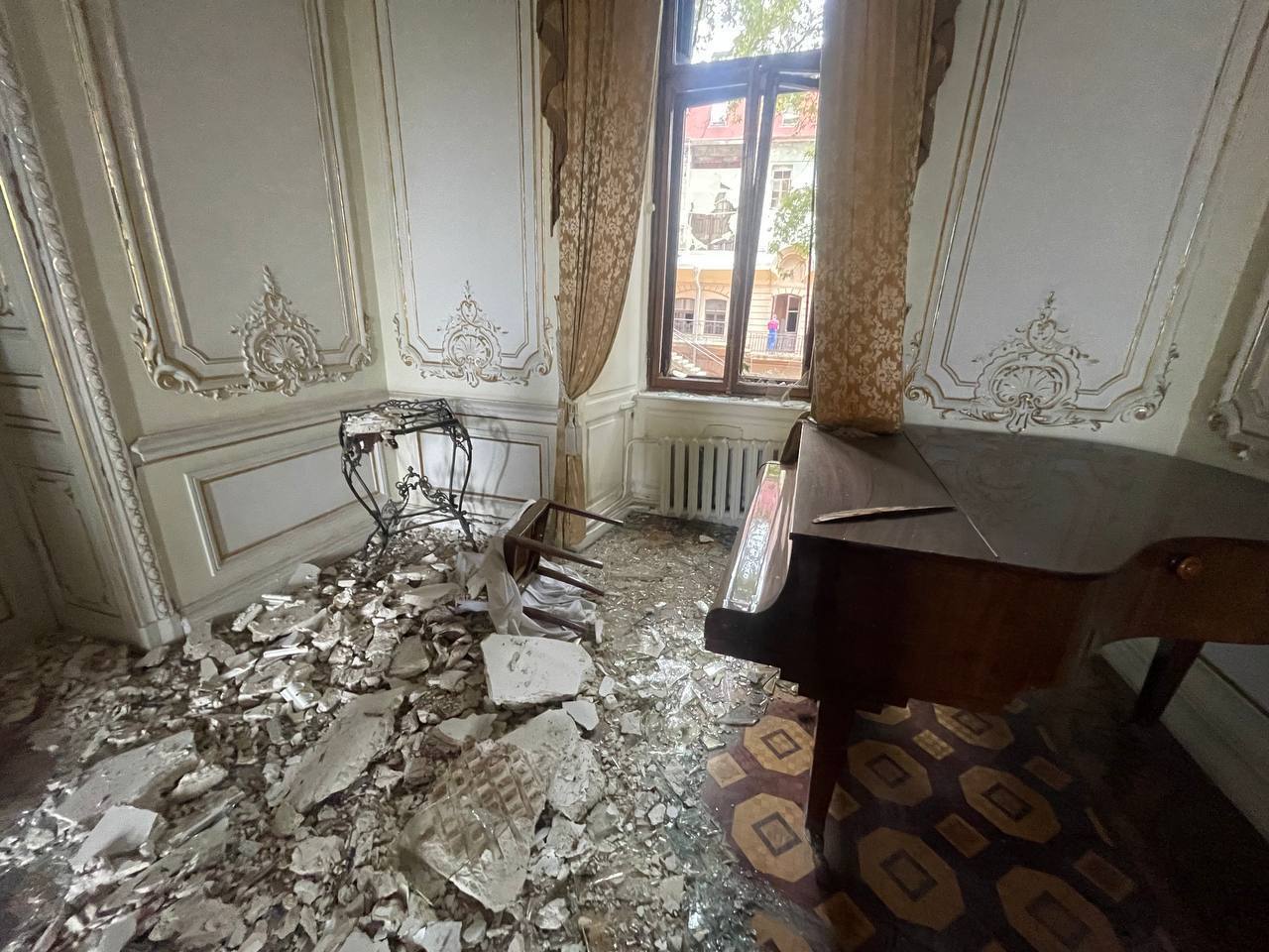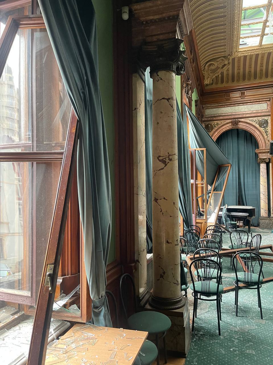 В сети появилось фото из Дома учёных - памятника архитектуры в центре Одессы, который пострадал во время российской ракетной атаки.