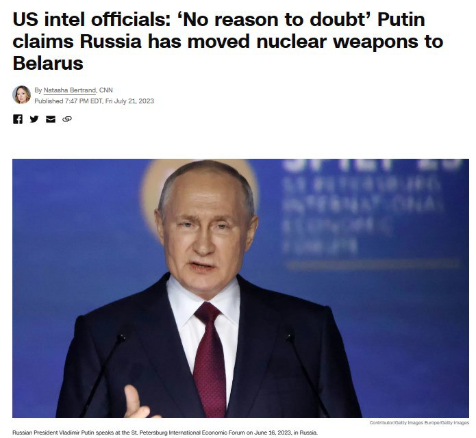 Американская разведка подтверждает, что российское тактическое ядерное оружие уже размещено в Беларуси.