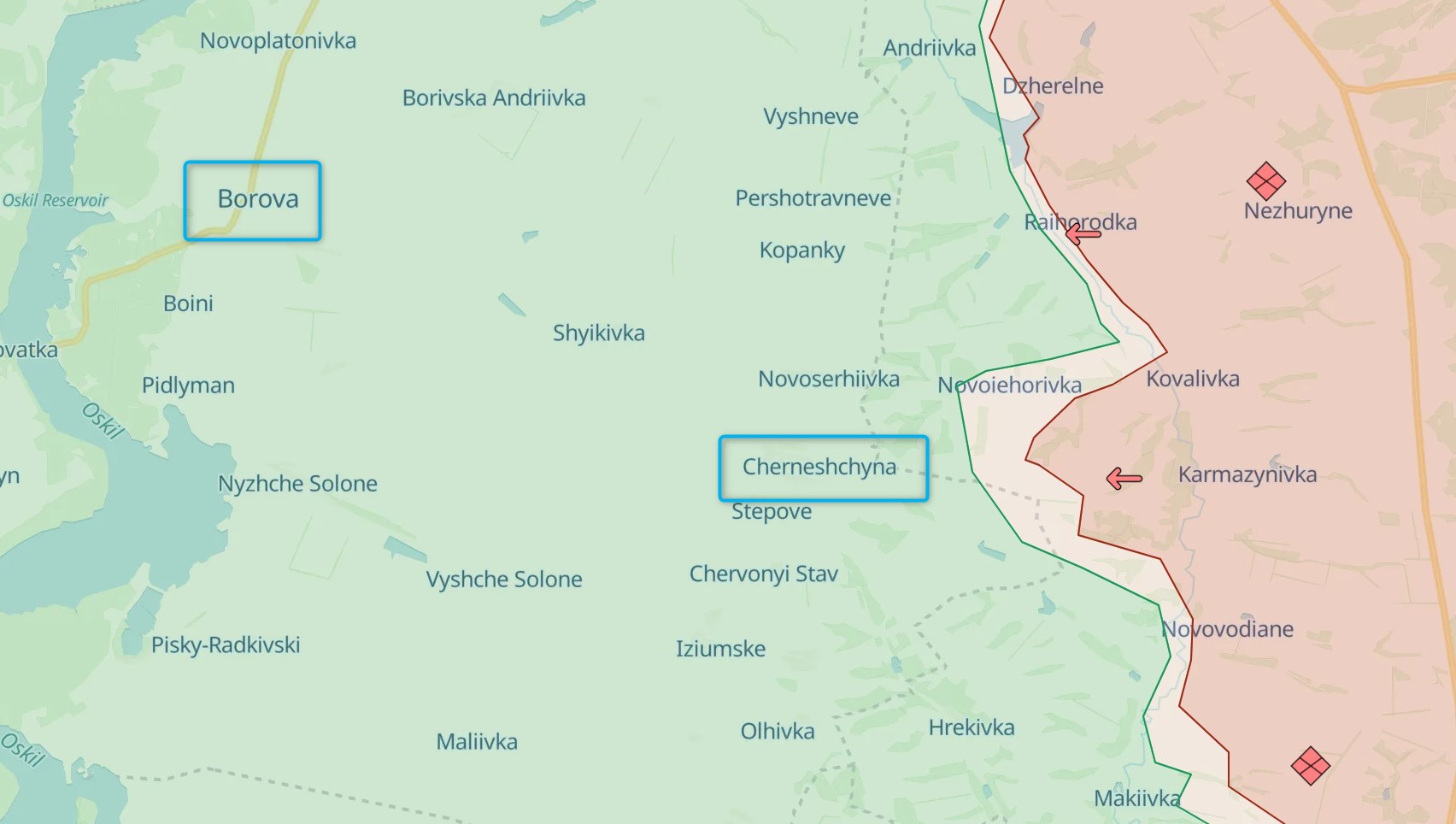Также военный телеграм-канал пишет, что россияне из этого района развивают наступление на Чернещину - село, рядом с которым проходит прямая дорога на Боровую, один из ключевых городов на левом берегу Оскола.