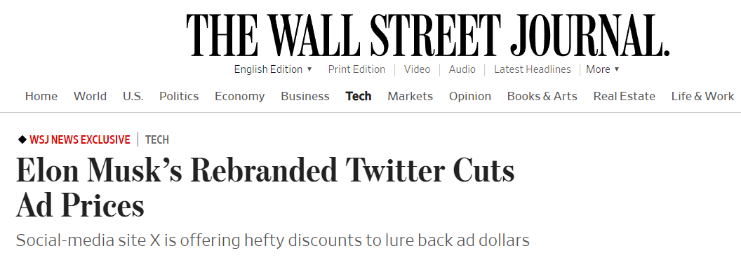 Социальная сеть Twitter после ребрендинга и переименования в X снижает стоимость рекламы для привлечения новых брендов на платформу, а также предупреждает уже присутствующие о лишении верификации в случае низких рекламных затрат.