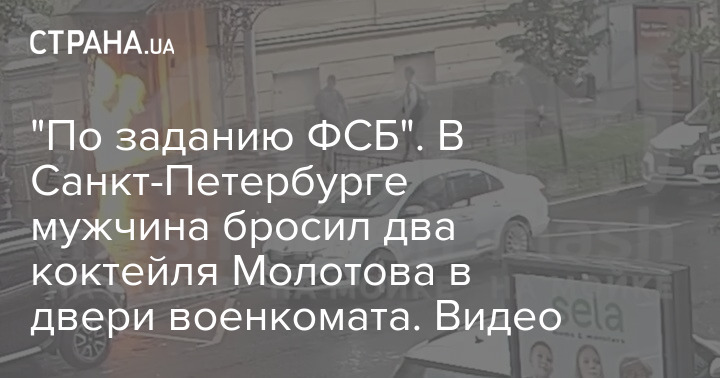 "По заданию ФСБ". В Санкт-Петербурге мужчина бросил два коктейля Молотова в двери военкомата. Видео