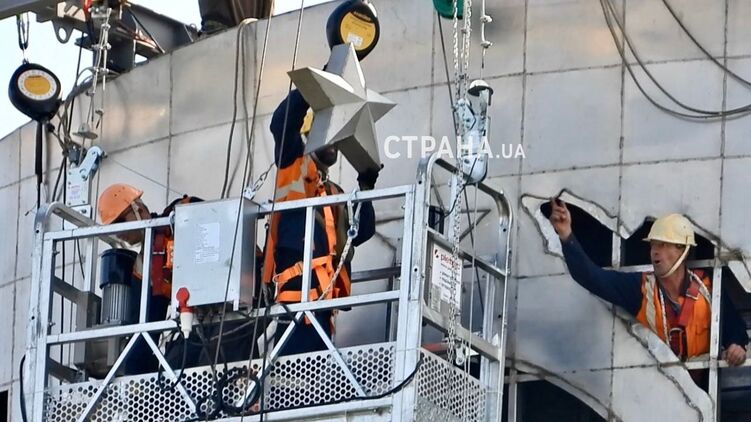 Последней сняли звезду. Появилось видео окончательного демонтажа советской символики с Родины-матери
