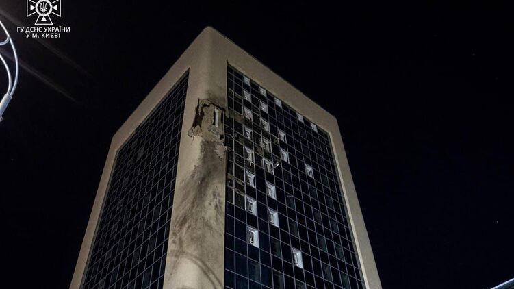 Поврежден фасад админздания с 9 по 11 этаж. Последствия ночной атаки на Киев