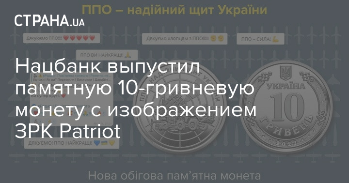 Нацбанк представил новую монету номиналом 10 гривен, на которой изображен комплекс зенитно-ракетный комплекс Patriot.