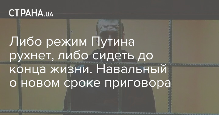 Российский оппозиционер Алексей Навальный прокомментировал свой 19-летний срок. Он считает, что либо режим Владимира Путина рухнет, либо он (то есть Навальный) будет сидеть до конца жизни.