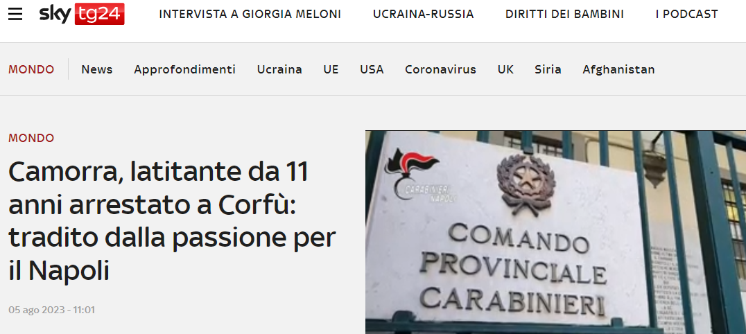 Подвела любовь к "Наполи". В Греции поймали итальянского мафиози, который 11 лет скрывался от правосудия