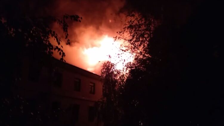 Паблики пишут, что верхние этажи корпуса полностью охвачены огнем, рухнула крыша и часть перекрытий.