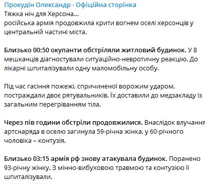 Ночью РФ трижды обстреляла жилые дома в Херсоне. Есть погибшие