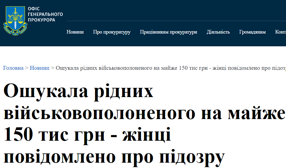 Следствием установлено, что уроженка Черниговской области, которая якобы занимается обменом военнопленных, предложила женщине за вознаграждение помочь установить местонахождение военнопленного мужчины. Она представилась сотрудницей Министерства обороны Украины.
