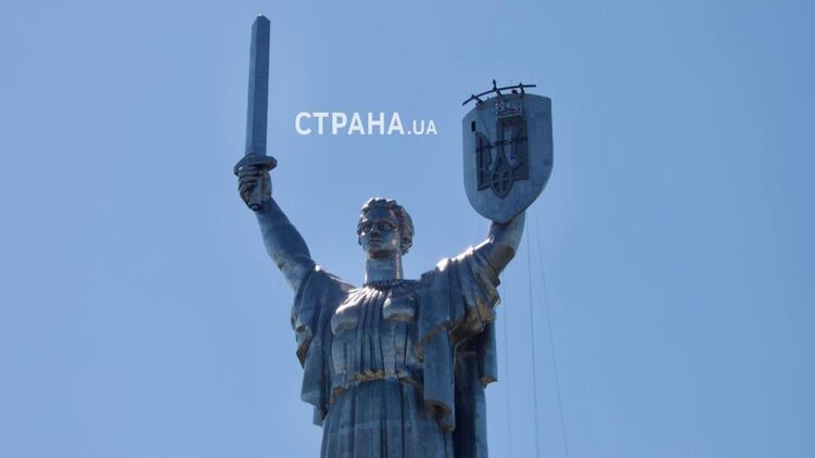 По состоянию на понедельник, 14 августа, монтаж тризуба на монументе "Родина-мать" завершен.
