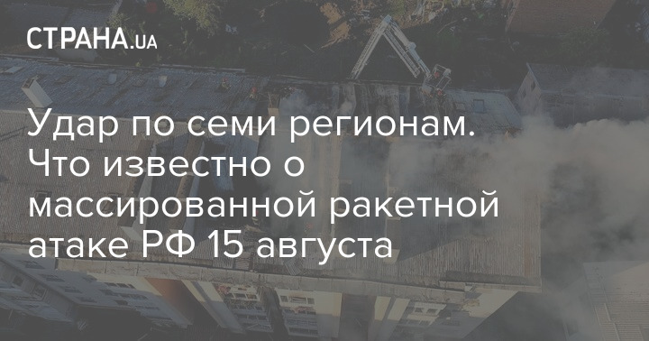 Ночью 15 августа РФ нанесла очередной массированный ракетный удар по территории Украины. Четыре человека погибли, 16 ранены, повреждена гражданская инфраструктура, жилые дома и предприятия.