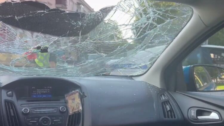 Взрыв был настолько мощным, что у женщины полностью треснуло лобовое стекло в авто.