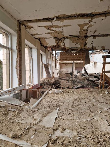 МВД публикует фото горсовета в Семеновке Черниговской области после ночного прилета.
