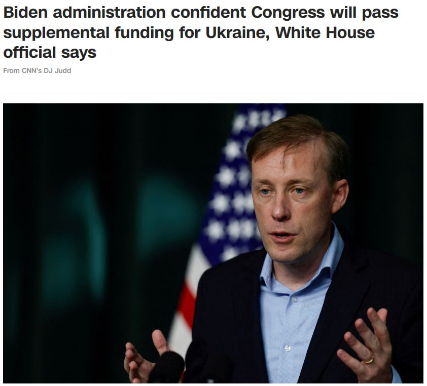 CNN напомнил, что большинство американцев выступают против разрешения Конгрессом дополнительного финансирования для поддержки Украины в ее войне с Россией.