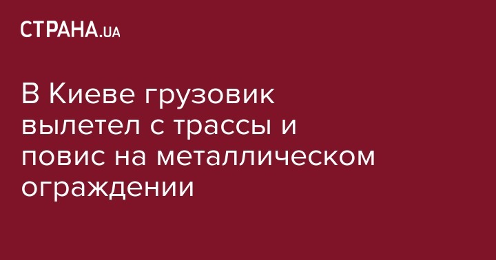 В Киеве грузовик вылетел с трассы и повис на металлическом ограждении