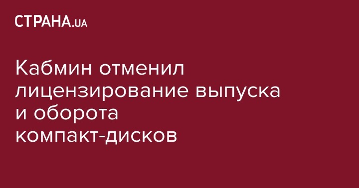 Кабинет министров Украины упразднил лицензирование выпуска и оборота компакт-дисков. Соответствующее постановление №903 от 7 декабря размещено на официальном сайте Кабмина.