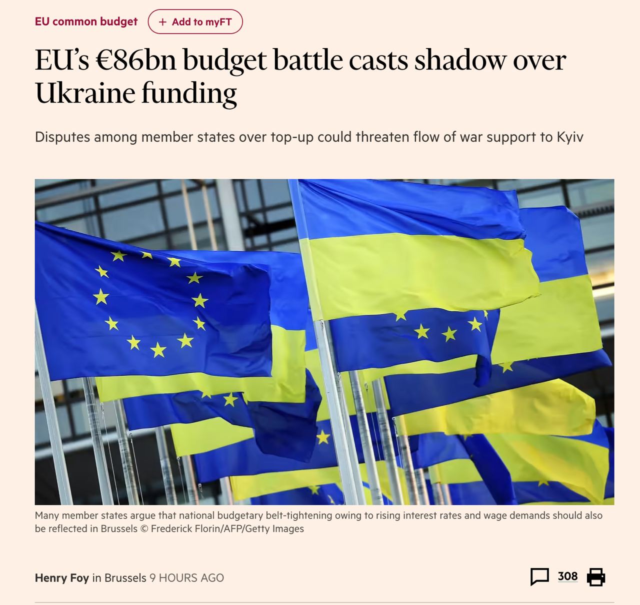 Брюссель объединил финансовую поддержку Украины (20 млрд евро) с требованиями по пополнению бюджета ЕС (66 млрд евро) для покрытия процентных расходов по долгам и повышения зарплат еврочиновников.