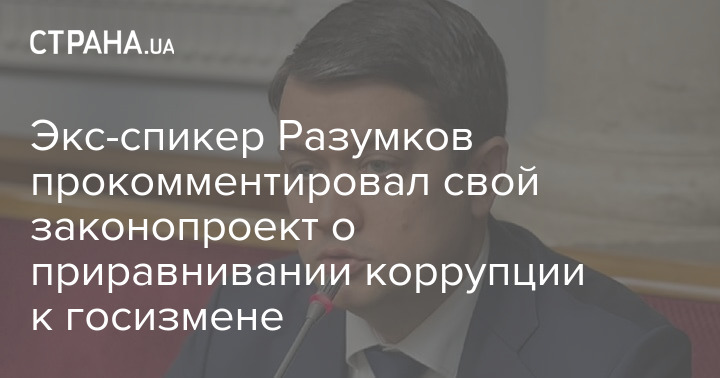 Экс-спикер Верховной Рады депутат Дмитрий Разумков прокомментировал "Стране" свой законопроект о приравнивании коррупции во время военного положения к государственной измене, который он внес вскоре после того, как с такой же идеей выступил президент Владимир Зеленский.